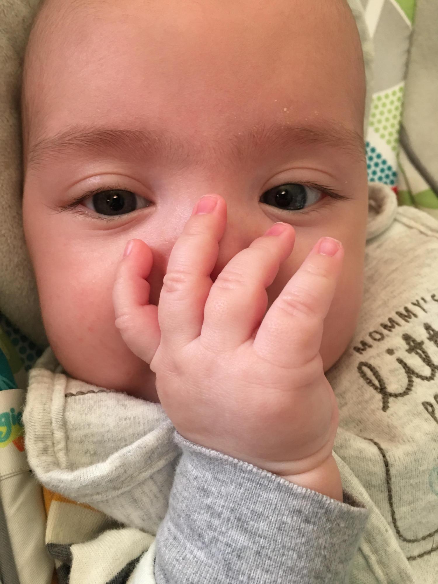 He is a happy baby, always hungry, has the best facial expressions and I think he’s going to be a talker.