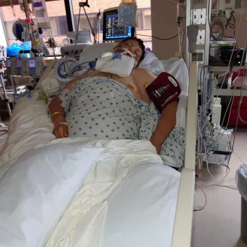 Thursday August 4th he was very restless and then started sweating, got weak and had trouble breathing. He was taken straight to surgery and put on ECMO, which is a heart lung machine.