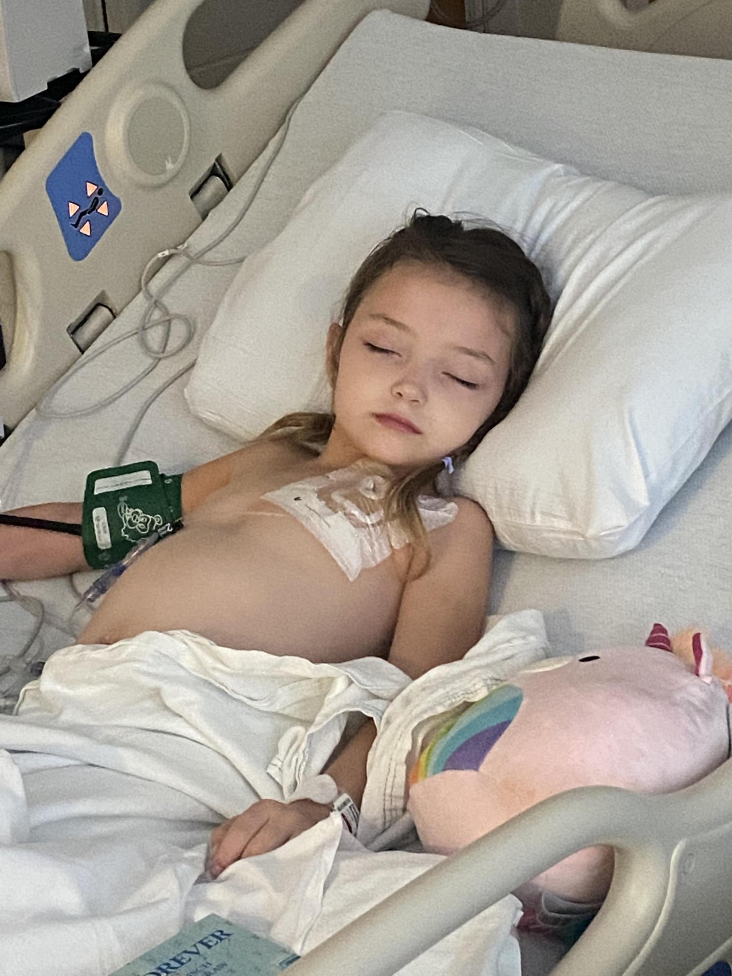First thing the next morning, Brooklyn was taken for her PET scan. Then, later that morning, she was taken for surgery to do 4 different things: